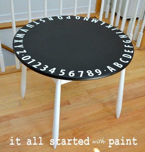 So as I added 2” vinyl letters and numbers (that I found at the hardware store) around the edge of the table …