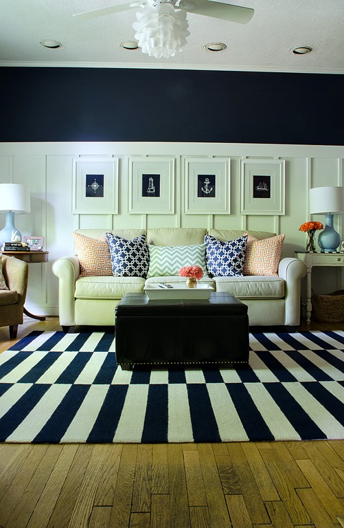 Navy and White Decor: Coastal Living Room Design Ideas.
