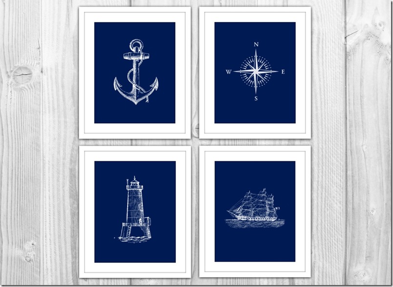 Take those navy and white nautical prints. I just ordered them yesterday from this Etsy shop. I think they’ll be the perfect art for the living room remodel.