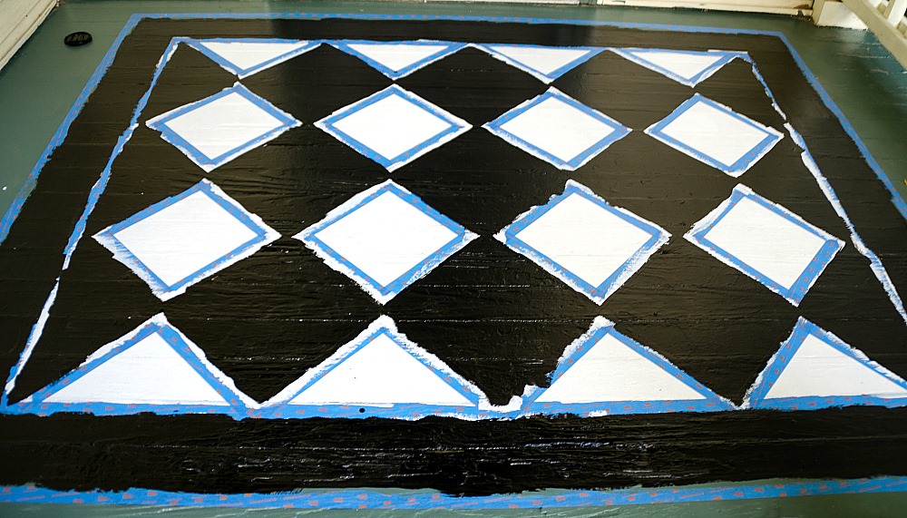 Tutorial on how to paint a diamond pattern porch rug – no math needed! 🙂