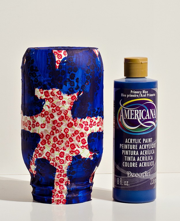 Tape off the Union Jack flag mason jar design. I used Washi tape and included a flag design on the front and back of the jar.