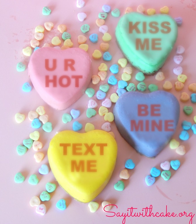 Valentine Conversation Heart Cheesecakes from Say it With Cake