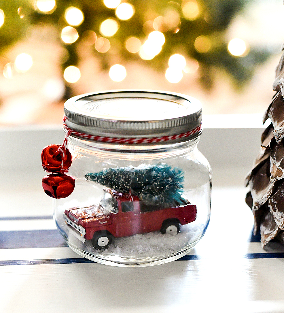 Vintage Truck in Mason Jar Snow Globe – Mason Jar Snow Globe Ideas.